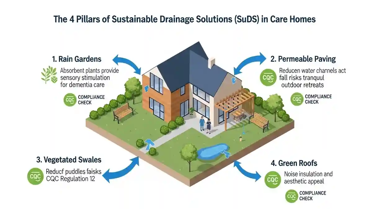 The future of sustainable drainage solutions CQC care home design is the integration of SuDS (Sustainable Drainage Systems). In South Harrow, Policy EN18 of the Local Plan encourages SuDS to manage surface water runoff, which often plagues the surrounding area.